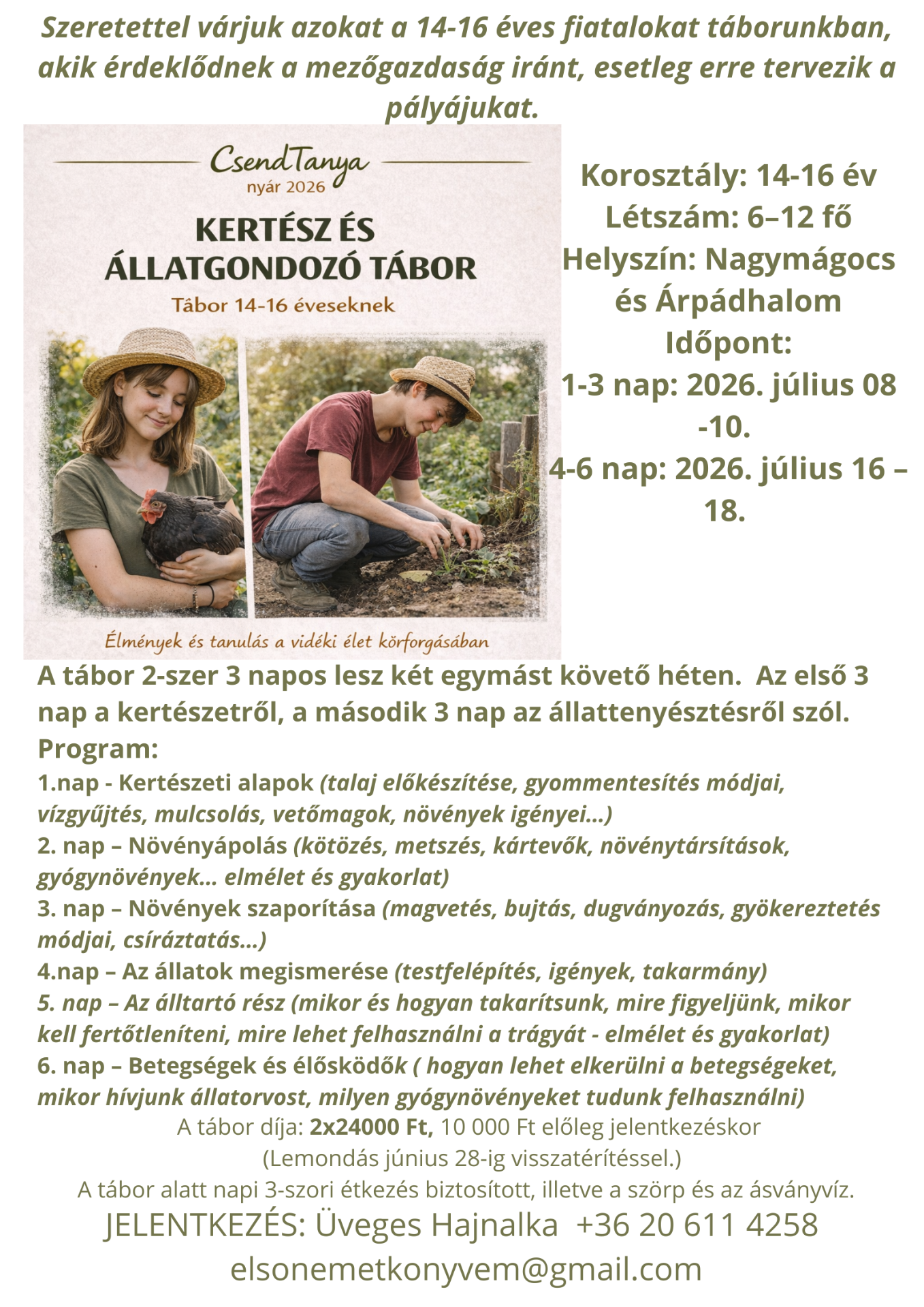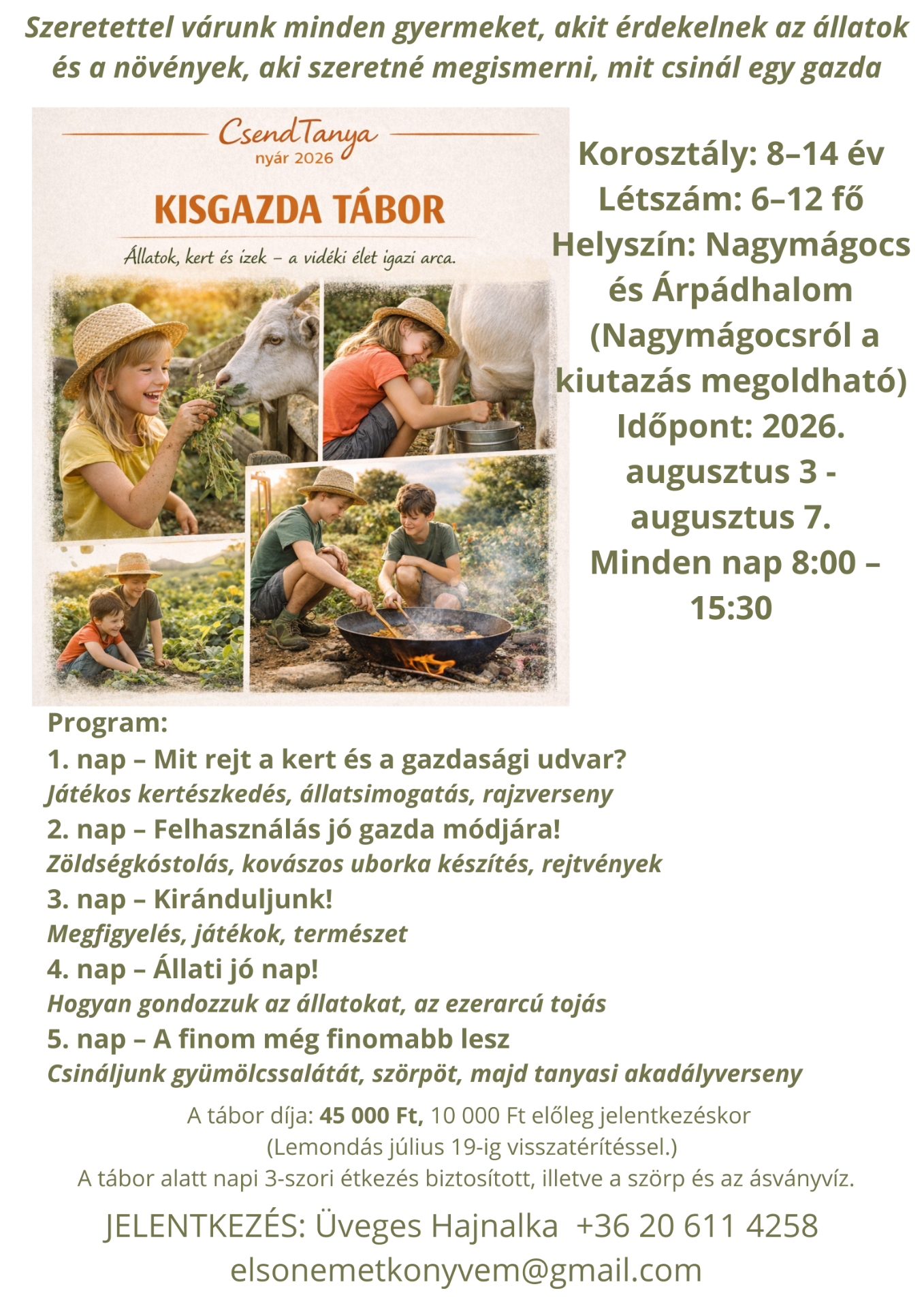 Rendelés és információkérés: agroturizmus2025@gmail.com (a foglalórendszer beállítása folyamatban)