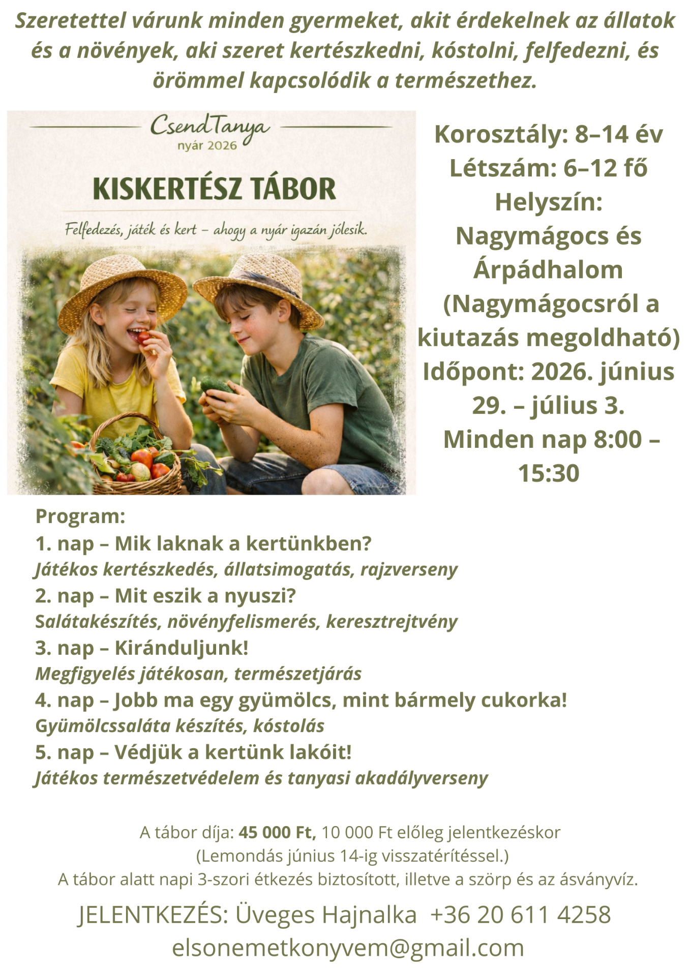 Itt láthatóak 2026-os táboraink. Várunk minden kicsit és kicsit nagyobbat szeretettel :)